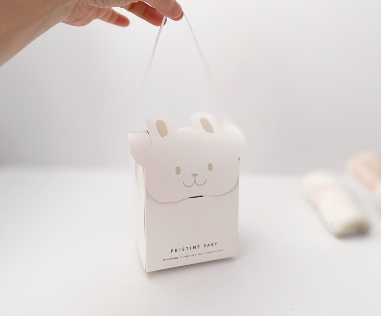 ↑持ち手になるリボン付きで、見た目がかわいいだけじゃなく持ち運びもしやすいのが嬉しいポイント。うさぎの目や耳のプリントも控えめで、全体がすっきり上品にまとまっているところが好きです。